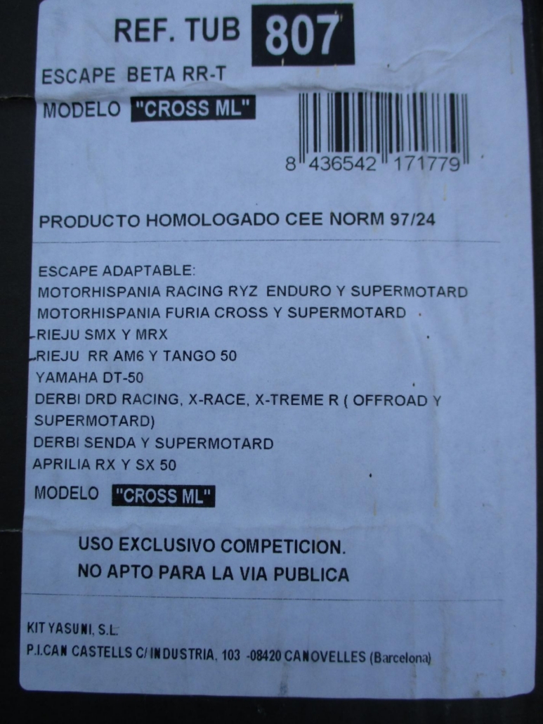 – POUR MOTOS 50 CC RIEJU, YAMAHA DT, DERBI, APRILIA